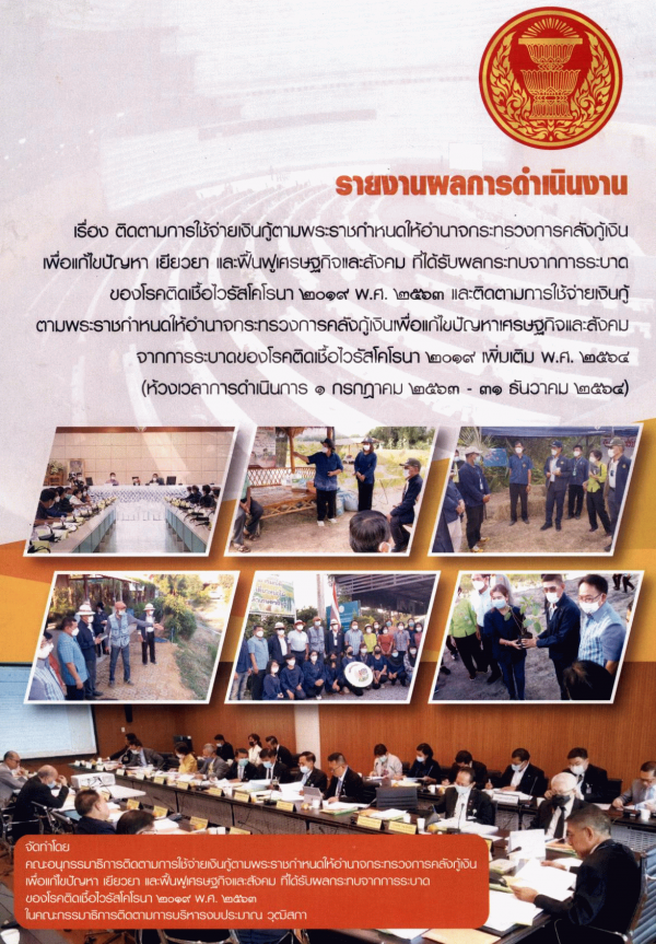 รายงานผลการดำเนินงาน เรื่อง ติดตามการใช้จ่ายเงินกู้ตามพระราชกำหนดให้อำนาจกระทรวงการคลังกู้เงินเพื่อแก้ไขปัญหา เยียวยา และฟื้นฟูเศรษฐกิจและสังคม ที่ได้รับผลกระทบจากการระบาดของโรคติดเชื้อไวรัสโคโรนา 2019 พ.ศ. 2563 และติดตามการใช้จ่ายเงินกู้ตามพระราชกำหนดให้อำนาจกระทรวงการคลังกู้เงินเพื่อแก้ไขปัญหาเศรษฐกิจและสังคมจากการระบาดของโรคติดเชื้อไวรัสโคโรนา 2019 เพิ่มเติม พ.ศ. 2564 (ห้วงเวลาการดำเนินการ 1 กรกฎาคม 2563 - 31 ธันวาคม 2564) ของ คณะอนุกรรมาธิการติดตามการใช้จ่ายเงินกู้ ตามพระราชกำหนดให้อำนาจกระทรวงการคลังกู้เงินเพื่อแก้ไขปัญหา เยียวยา และฟื้นฟูเศรษฐกิจและสังคม ที่ได้รับผลกระทบจากการระบาดของโรคติดเชื้อไวรัสโคโรนา 2019 พ.ศ. 2563 ใน คณะกรรมาธิการติดตามการบริหารงบประมาณ วุฒิสภา /