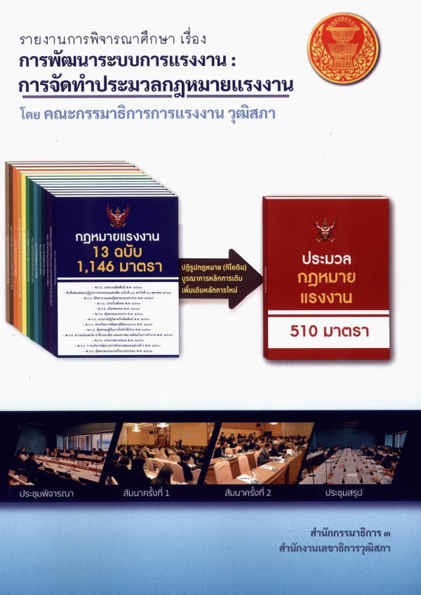 รายงานการพิจารณาศึกษา เรื่อง การพัฒนาระบบการแรงงาน : การจัดทำประมวลกฎหมายแรงงาน โดย คณะกรรมาธิการการแรงงาน วุฒิสภา / สำนักกรรมาธิการ 3 สำนักงานเลขาธิการวุฒิสภา.