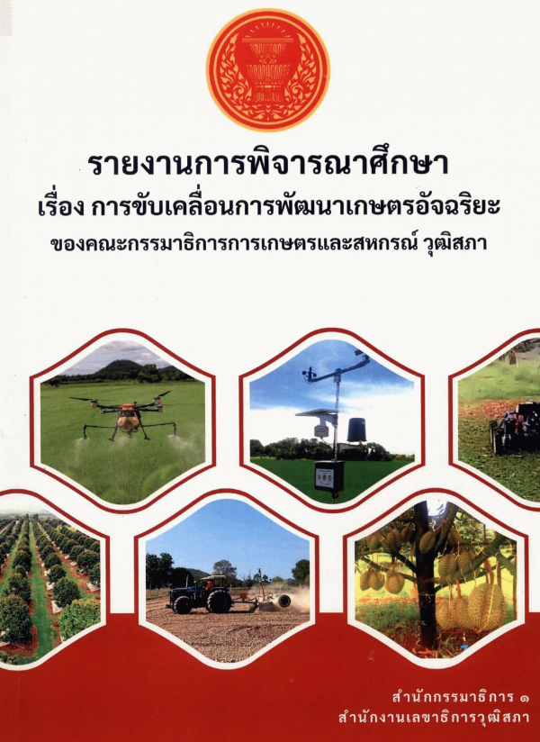 รายงานการพิจารณาศึกษา เรื่อง การขับเคลื่อนการพัฒนาเกษตรอัจฉริยะ ของคณะกรรมาธิการการเกษตรและสหกรณ์ วุฒิสภา / สำนักกรรมาธิการ 1 สำนักงานเลขาธิการวุฒิสภา.