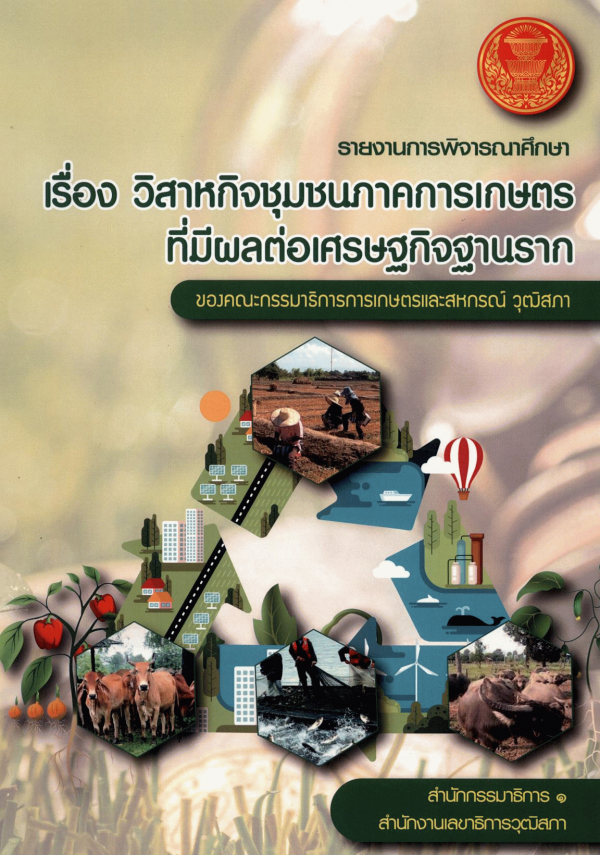 รายงานการพิจารณาศึกษา เรื่อง วิสาหกิจชุมชนภาคการเกษตรที่มีผลต่อเศรษฐกิจฐานราก โดยคณะกรรมาธิการการเกษตรและสหกรณ์ วุฒิสภา / สำนักกรรมาธิการ 1 สำนักงานเลขาธิการวุฒิสภา.