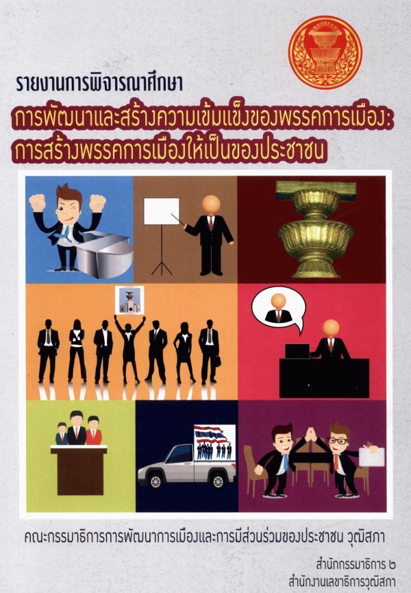 รายงานการพิจารณาศึกษา เรื่อง การพัฒนาและสร้างความเข้มแข็งของพรรคการเมือง: การสร้างพรรคการเมืองให้เป็นของประชาชน ของคณะกรรมาธิการการพัฒนาการเมืองและการมีส่วนร่วมของประชาชน วุฒิสภา / สำนักกรรมาธิการ 2 สำนักงานเลขาธิการวุฒิสภา