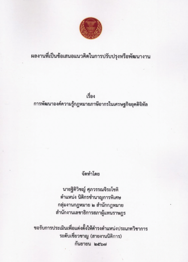 การพัฒนาองค์ความรู้กฎหมายภาษีอากรในเศรษฐกิจยุคดิจิทัล / ฐิติวิชญ์ ศุภวรรณจิระโชติ.