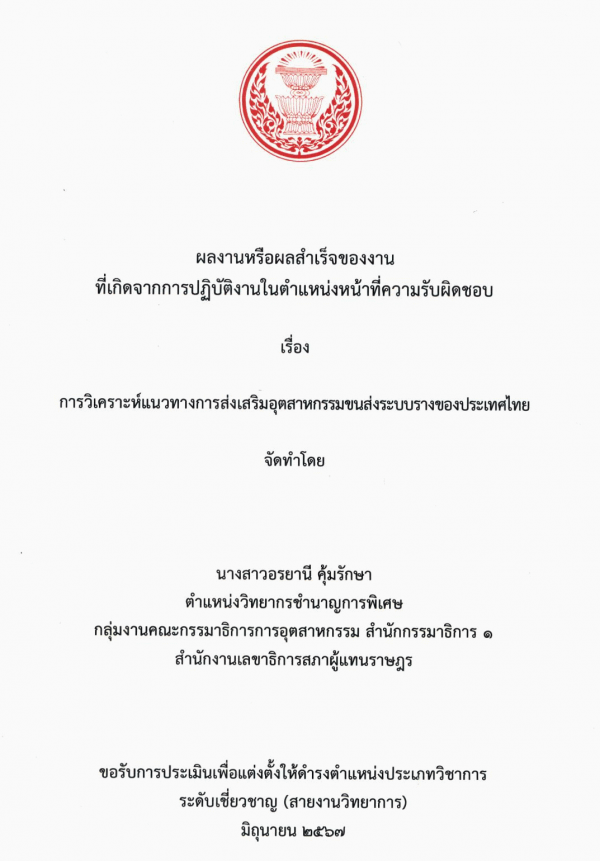 การวิเคราะห์แนวทางการส่งเสริมอุตสาหกรรมขนส่งระบบรางของประเทศไทย / อรยานี คุ้มรักษา.