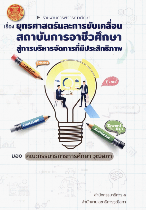 รายงานการพิจารณาศึกษา เรื่อง ยุทธศาสตร์และการขับเคลื่อนสถาบันการอาชีวศึกษา สู่การบริหารจัดการที่มีประสิทธิภาพ ของ คณะกรรมาธิการการศึกษา วุฒิสภา / สำนักกรรมาธิการ 3 สำนักงานเลขาธิการวุฒิสภา.