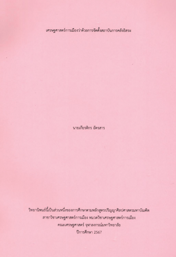 เศรษฐศาสตร์การเมืองว่าด้วยการจัดตั้งสถาบันการคลังอิสระ = Political economy on establishment independent fiscal institutions (ifis) /