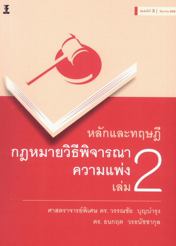 หลักและทฤษฎีกฎหมายวิธีพิจารณาความแพ่ง เล่ม 2 / วรรณชัย บุญบำรุง, ธนกฤต วรธนัชชากุล.
