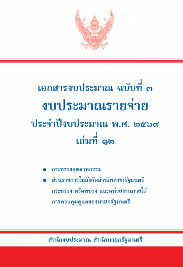เอกสารงบประมาณ ฉบับที่ 3 งบประมาณรายจ่าย ประจำปีงบประมาณ พ.ศ. 2569 เล่มที่ 12 กระทรวงอุตสาหกรรม ส่วนราชการไม่สังกัดสำนักนายกรัฐมนตรี กระทรวง หรือทบวง และหน่วยงานภายใต้การควบคุมดูแลของนายกรัฐมนตรี / สำนักงบประมาณ