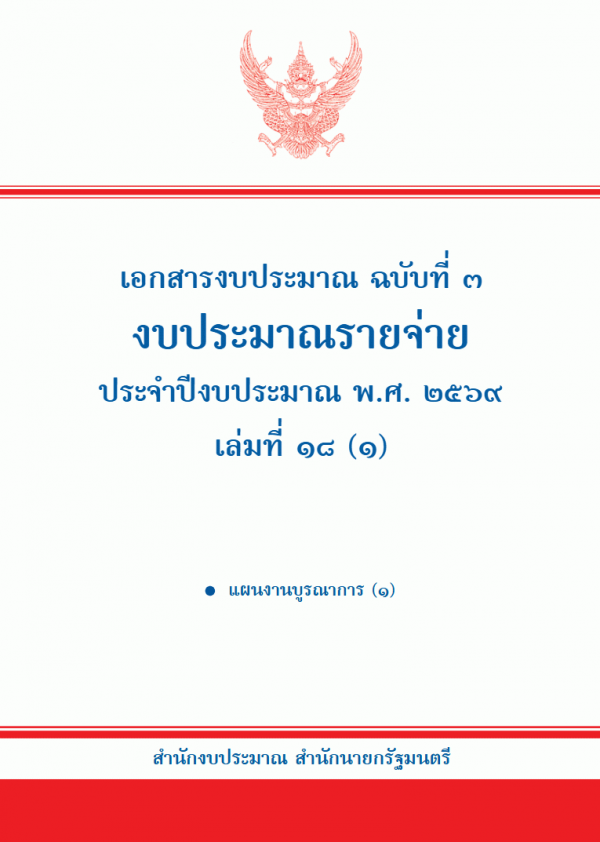 เอกสารงบประมาณ ฉบับที่ 3 งบประมาณรายจ่าย ประจำปีงบประมาณ พ.ศ. 2569 เล่มที่ 18 (1) แผนงานบูรณาการ (1) / สำนักงบประมาณ.