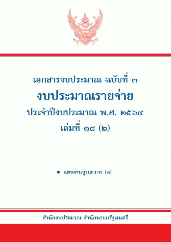 เอกสารงบประมาณ ฉบับที่ 3 งบประมาณรายจ่าย ประจำปีงบประมาณ พ.ศ. 2569 เล่มที่ 18 (2) แผนงานบูรณาการ (2) / สำนักงบประมาณ.