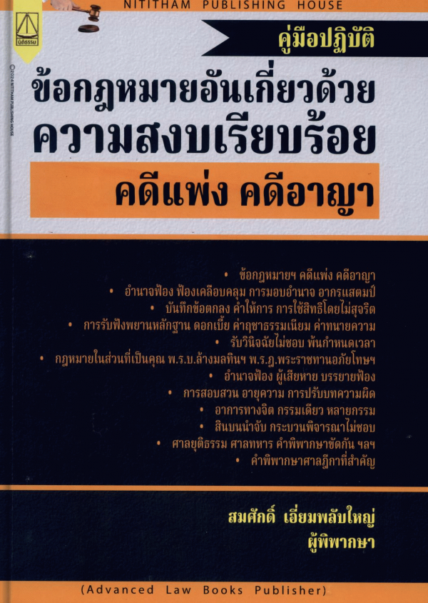 ข้อกฎหมายอันเกี่ยวด้วยความสงบเรียบร้อย คดีแพ่ง คดีอาญา / สมศักดิ์ เอี่ยมพลับใหญ่.