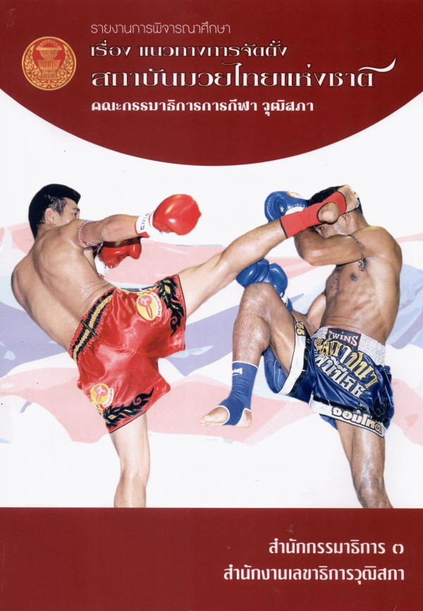รายงานการพิจารณาศึกษา เรื่อง แนวทางการจัดตั้งสถาบันมวยไทยแห่งชาติ คณะกรรมาธิการการกีฬา วุฒิสภา / สำนักกรรมาธิการ 3 สำนักงานเลขาธิการวุฒิสภา.