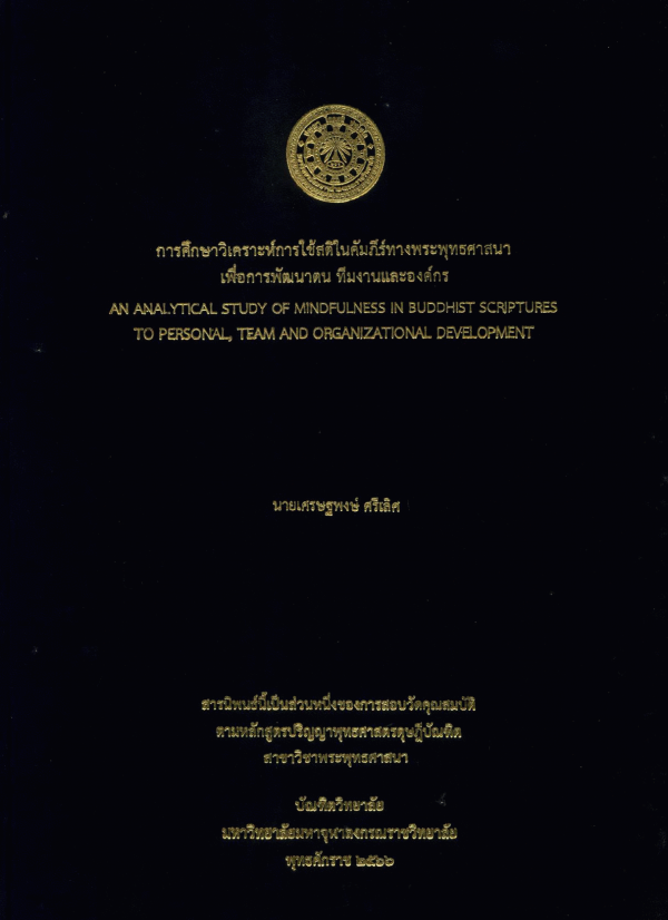 การศึกษาวิเคราะห์การใช้สติในคัมภีร์ทางพุทธศาสนาเพื่อการพัฒนาตน ทีมงานและองค์กร / เศรษฐพงษ์ ศรีเลิศ.