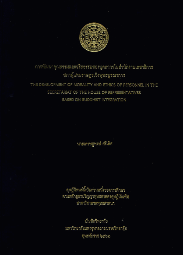 การพัฒนาคุณธรรมและจริยธรรมของบุคลากรในสำนักงานเลขาธิการสภาผู้แทนราษฎรเชิงพุทธบูรณาการ / เศรษฐพงษ์ ศรีเลิศ.