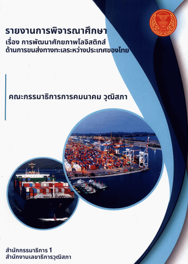 รายงานการพิจารณาศึกษา เรื่อง การพัฒนาศักยภาพโลจิสติกส์ด้านการขนส่งทางทะเลระหว่างประเทศของไทย คณะกรรมาธิการการคมนาคม วุฒิสภา / สำนักกรรมาธิการ 1 สำนักงานเลขาธิการวุฒิสภา.