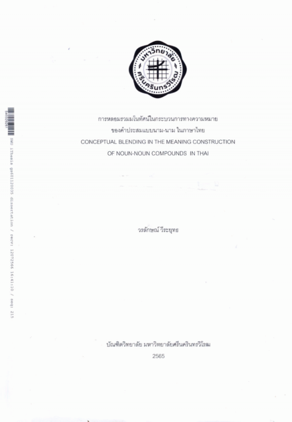 การหลอมรวมมโนทัศน์ในกระบวนการทางความหมายของคำประสมแบบนาม-นาม ในภาษาไทย = Conceptual blending in the meaning construction of noun-noun compounds in Thai / วรลักษณ์ วีระยุทธ.