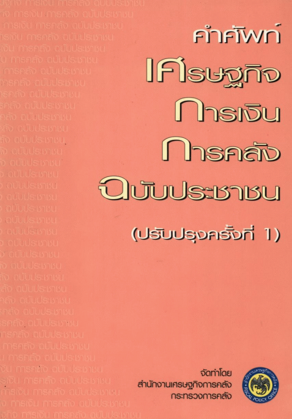 คำศัพท์ เศรษฐกิจ การเงิน การคลัง ฉบับประชาชน (ปรับปรุงครั้งที่ 1) / สำนักงานเศรษฐกิจการคลัง กระทรวงการคลัง.