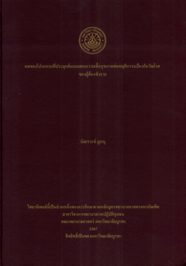 ผลของโปรแกรมที่ประยุกต์แบบแผนความเชื่อสุขภาพต่อพฤติกรรมป้องกันวัณโรค ของผู้ต้องขังชาย / นัสเราะห์ ยูหนุ.
