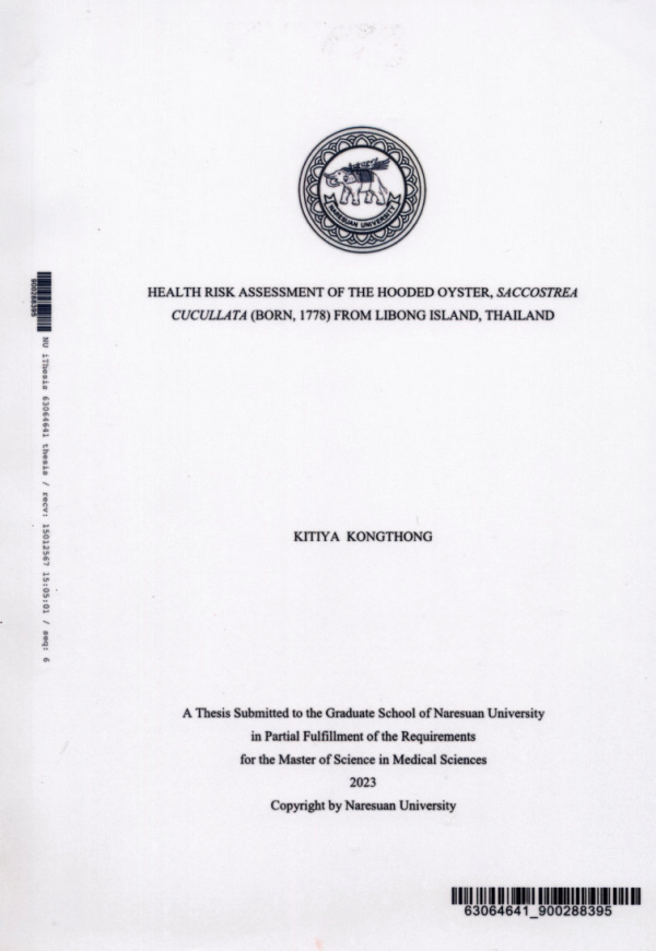 Health risk assessment of the hooded oyster, Saccostrea cucullata (Born, 1778) from Libong Island, Thailand / Kittiya Kongthong.