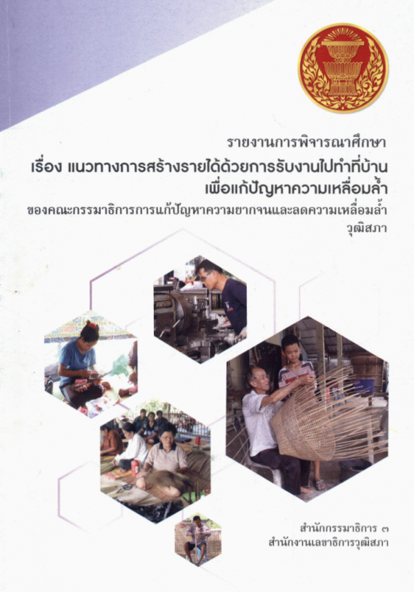 รายงานการพิจารณาศึกษา เรื่อง แนวทางการสร้างรายได้ด้วยการรับงานไปทำที่บ้านเพื่อแก้ปัญหาความเหลื่อมล้ำ ของคณะกรรมาธิการการแก้ปัญหาความยากจนและลดความเหลื่อมล้ำ วุฒิสภา / สำนักกรรมาธิการ 3 สำนักงานเลขาธิการวุฒิสภา.
