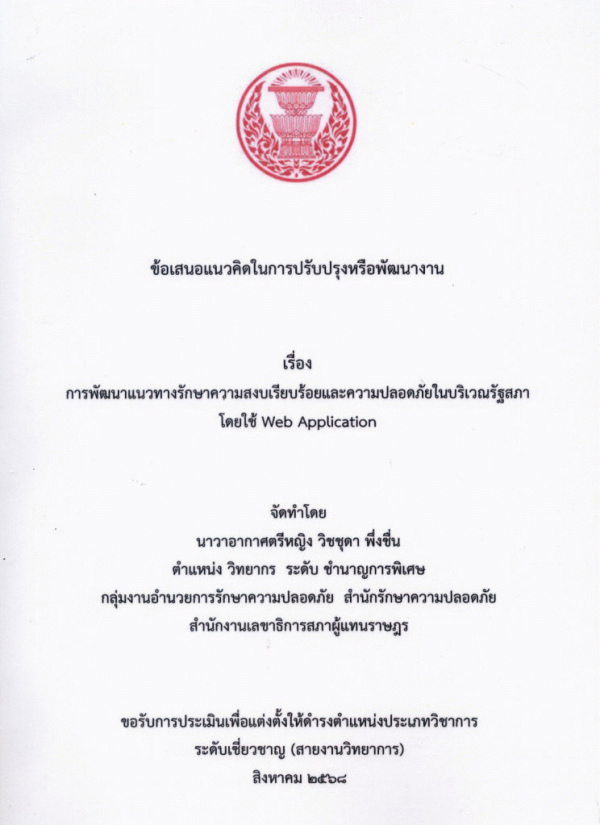 การพัฒนาแนวทางรักษาความสงบเรียบร้อยและความปลอดภัยในบริเวณรัฐสภา โดยใช้ Web Application / วิชชุดา พึ่งชื่น.