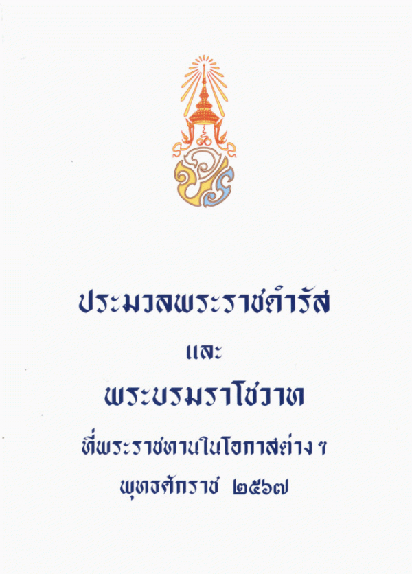 ประมวลพระราชดำรัสและพระบรมราโชวาทที่พระราชทานในโอกาสต่าง ๆ พุทธศักราช 2567 / กรมราชเลขานุการในพระองค์ สำนักพระราชวัง.