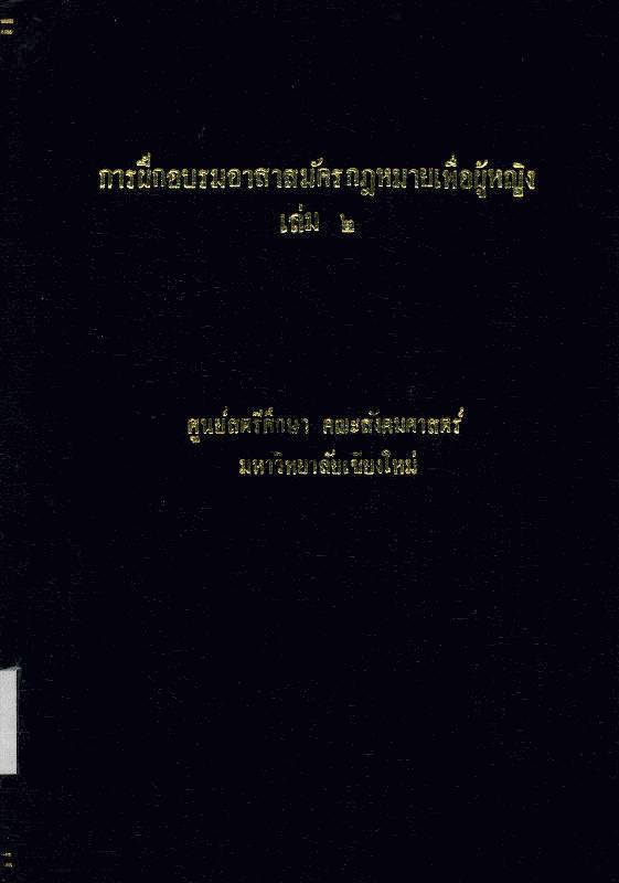 การฝึกอบรมอาสาสมัครกฎหมายเพื่อผู้หญิง เล่ม 2 / ศูนย์สตรีศึกษา คณะสังคมศาสตร์ มหาวิทยาลัยเชียงใหม่.