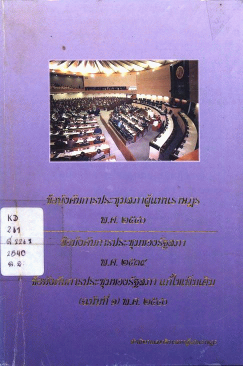 ข้อบังคับการประชุมสภาผู้แทนราษฎร พ.ศ. 2540 ข้อบังคับการประชุมของรัฐสภา พ.ศ. 2539 ข้อบังคับการประชุมของรัฐสภา แก้ไขเพิ่มเติม (ฉบับที่ 1) พ.ศ. 2540 / สำนักงานเลขาธิการสภาผู้แทนราษฎร.