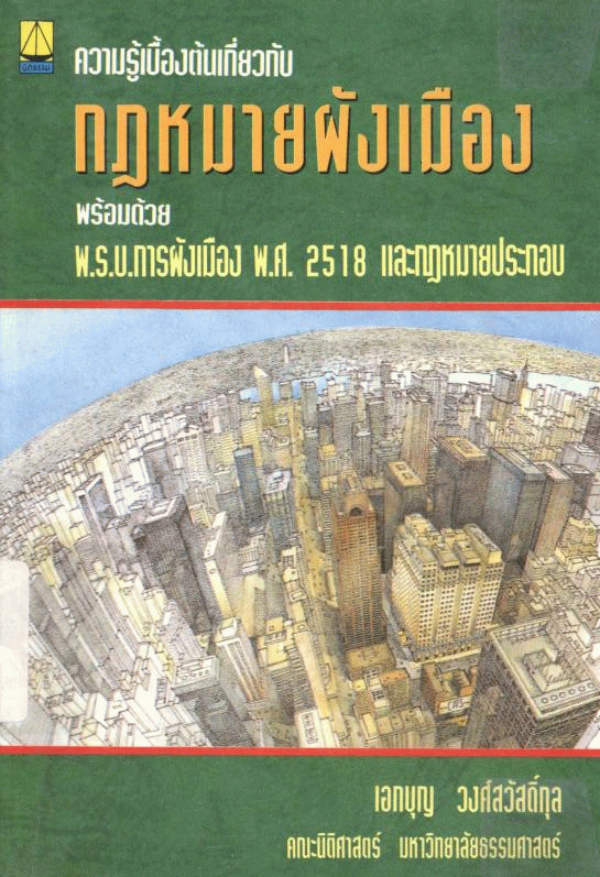 ความรู้เบื้องต้นเกี่ยวกับกฎหมายผังเมือง พร้อมด้วย พ.ร.บ. การผังเมือง พ.ศ.2518 และกฎหมายประกอบ / เอกบุญ วงศ์สวัสดิ์กุล.