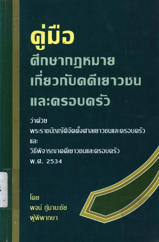 คู่มือศึกษากฎหมายเกี่ยวกับคดีเยาวชนและครอบครัวว่าด้วยพระราชบัญญัติจัดตั้งศาลเยาวชนและครอบครัว และวิธีพิจารณาคดีเยาวชนและครอบครัว พ.ศ.2534 / พจน์ กู้มานะชัย.