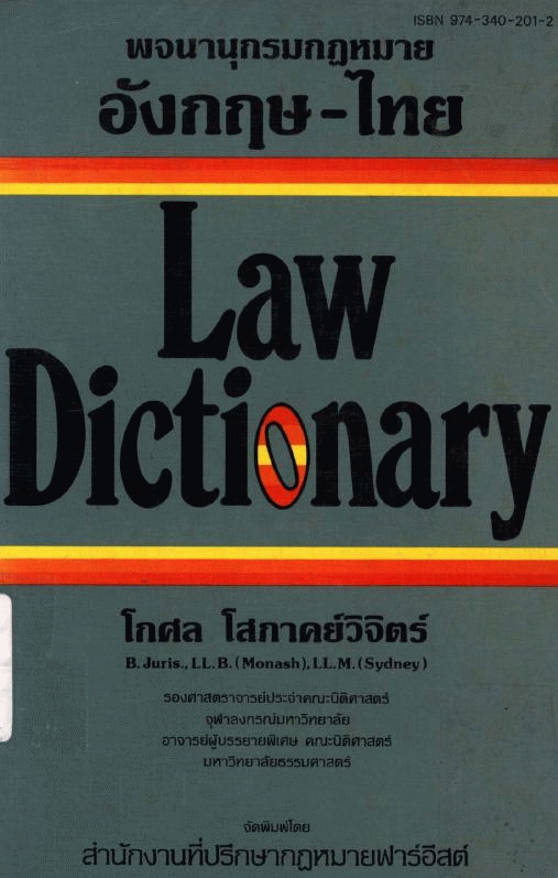 พจนานุกรมกฎหมาย อังกฤษ-ไทย / เรียบเรียงโดย โกศล โสภาคย์วิจิตร์.