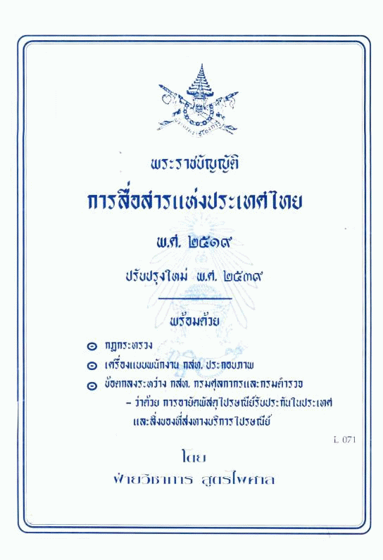พระราชบัญญัติการสื่อสารแห่งประเทศไทย พ.ศ.2519 ปรับปรุงใหม่ พ.ศ. 2539 / สูตรไพศาล.