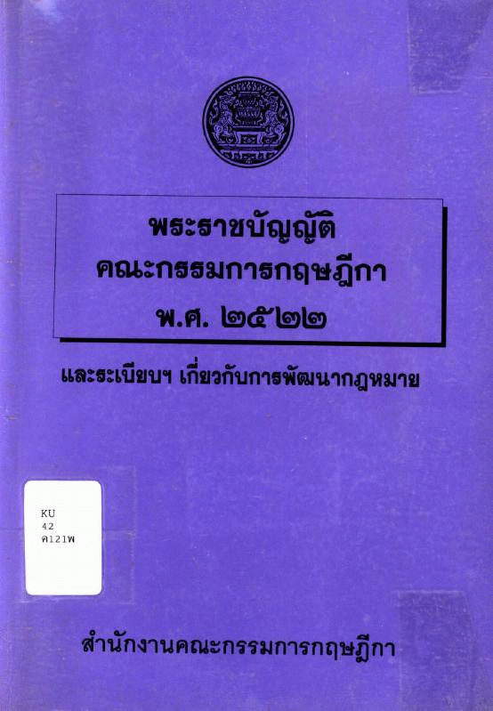 National Assembly Library of Thailand | Law Book collection | Law Book shelves | KU 42 ค121พ (เรียกดูชั้นหนังสือ(เปิดด้านล่าง)) | พร้อมให้บริการ | 3961126413 |