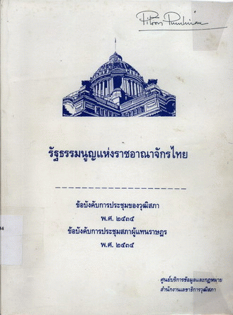 รัฐธรรมนูญแห่งราชอาณาจักรไทย ข้อบังคับการประชุมวุฒิสภา พ.ศ. 2535 ข้อบังคับการประชุมสภาผู้แทนราษฎร พ.ศ. 2535 / ศูนย์บริการข้อมูลและกฎหมาย สำนักงานเลขาธิการวุฒิสภา.