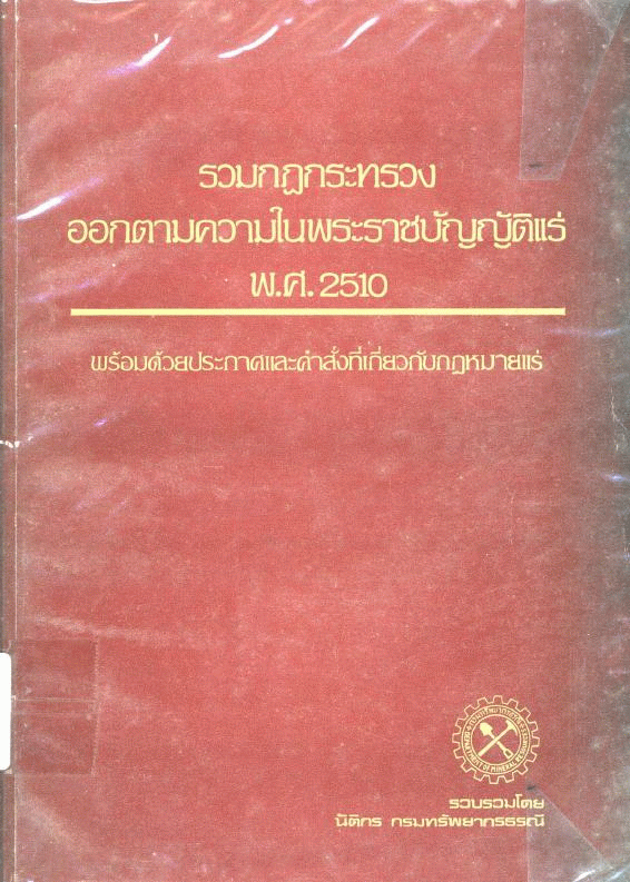 รวมกฎกระทรวง ออกตามความในพระราชบัญญัติแร่ พ.ศ. 2510 พร้อมด้วยประกาศและคำสั่งที่เกี่ยวกับกฎหมายแร่ / กรมทรัพยากรธรณี.