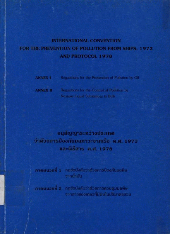 อนุสัญญาระหว่างประเทศว่าด้วยการป้องกันมลภาวะจากเรือ ค.ศ.1973 และพิธีสาร ค.ศ.1978 / กรมเจ้าท่า.
