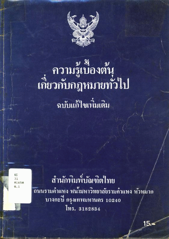 National Assembly Library of Thailand | Law Book collection | Law Book shelves | KC 31 ค145ค (เรียกดูชั้นหนังสือ(เปิดด้านล่าง)) | พร้อมให้บริการ | 3961127920 |