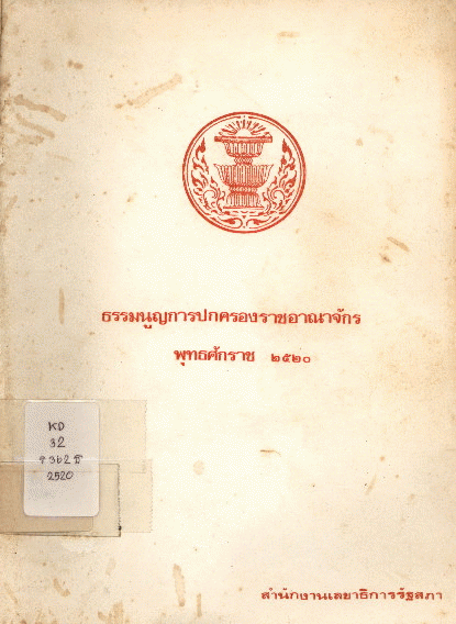 National Assembly Library of Thailand | Law Book collection | Law Book shelves | KD 32 ร362ธ 2520 (เรียกดูชั้นหนังสือ(เปิดด้านล่าง)) | พร้อมให้บริการ | 3961131360 |