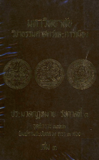 ประมวลกฎหมาย รัชกาลที่ 1 จุลศักราช 1166 เล่ม 3.