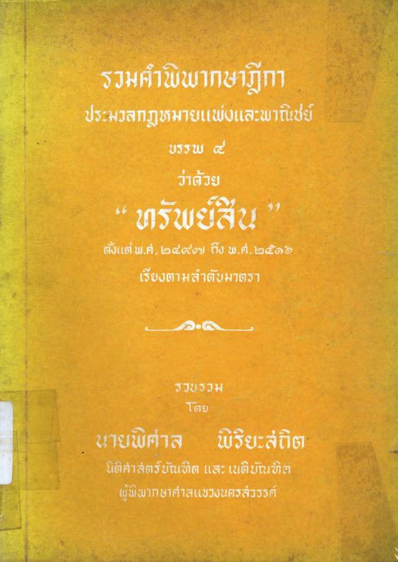 รวมคำพิพากษาฏีกา ประมวลกฎหมายแพ่งและพาณิชย์ บรรพ 4 ว่าด้วย "ทรัพย์สิน" ตั้งแต่ พ.ศ.2497 ถึง พ.ศ.2516 เรียงตามลำดับมาตรา