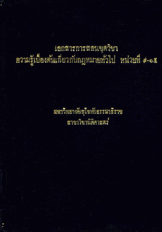 เอกสารการสอนชุดวิชา ความรู้เบื้องต้นเกี่ยวกับกฎหมายทั่วไป หน่วยที่ 9-15 [16th]