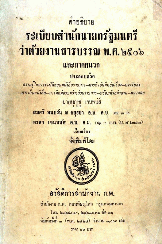 คำอธิบายระเบียบสำนักนายกรัฐมนตรีว่าด้วยงานสารบรรณ พ.ศ.2506 และภาคผนวก [3rd]