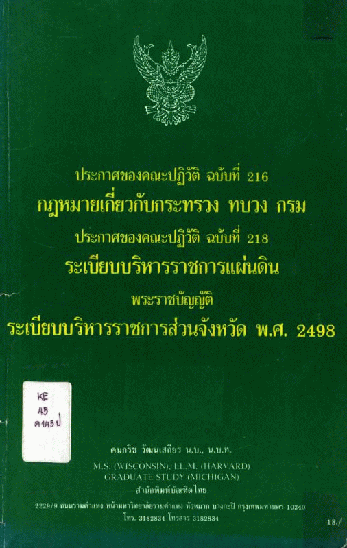 National Assembly Library of Thailand | Law Book collection | KE 45 ค145ป (เรียกดูชั้นหนังสือ(เปิดด้านล่าง)) | พร้อมให้บริการ | 3961131826 |