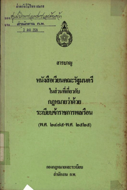 สารบาญหนังสือเวียนคณะรัฐมนตรีในส่วนที่เกี่ยวกับกฎหมายว่าด้วยระเบียบข้าราชการพลเรือน (พ.ศ.2475-พ.ศ.2525)
