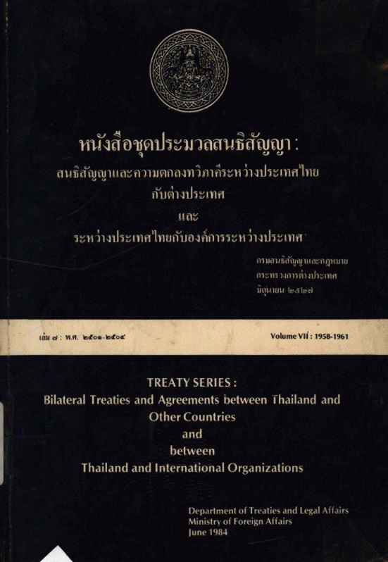 หนังสือชุดประมวลสนธิสัญญา : สนธิสัญญาและความตกลงทวิภาคีระหว่างประเทศไทยกับต่างประเทศ และระหว่างประเทศไทยกับองค์การระหว่างประเทศ เล่ม 7 : พ.ศ.2501-2504