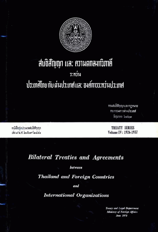 หนังสือชุดประมวลสนธิสัญญา : สนธิสัญญาและความตกลงทวิภาคีระหว่างประเทศไทยกับต่างประเทศ และองค์การระหว่างประเทศ เล่ม 4 : พ.ศ.2469-2480