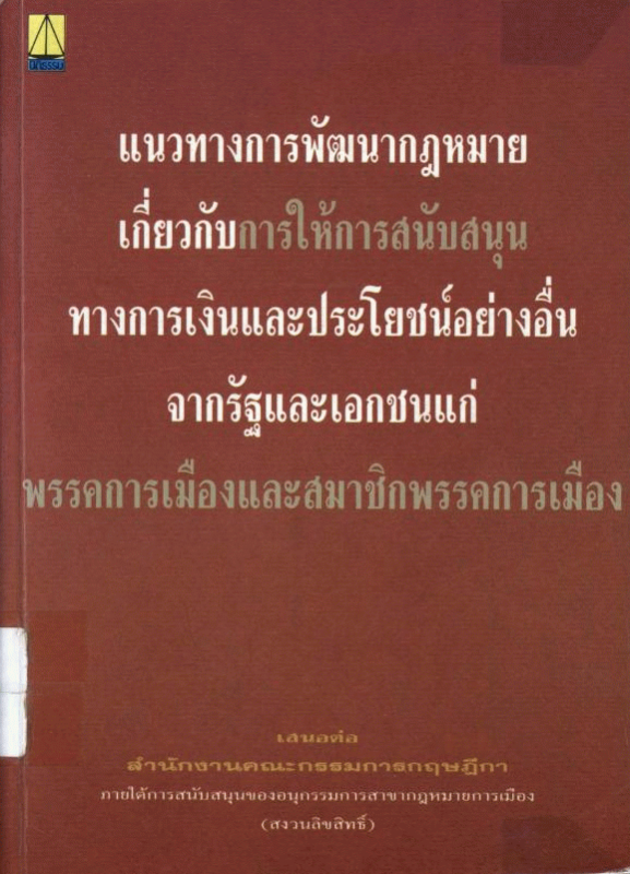 แนวทางการพัฒนากฎหมายเกี่ยวกับการให้การสนับสนุนทางการเงินและประโยชน์อย่างอื่นจากรัฐและเอกชนแก่พรรคการเมืองและสมาชิกพรรคการเมือง [2540]