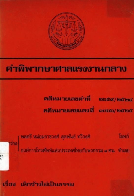 คำพิพากษาศาลแรงงานกลาง คดีหมายเลขดำที่ 2659/2524 คดีหมายแลขแดงที่ 1366/2525 เรื่อง เลิกจ้างไม่เป็นธรรม