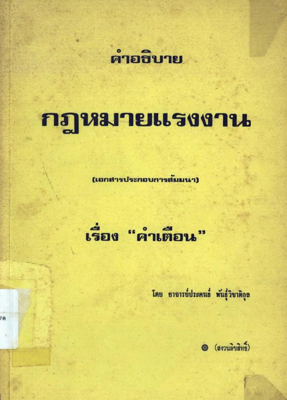 คำอธิบายกฎหมายแรงงาน (เอกสารประกอบการสัมมนา) เรื่อง"คำเตือน"