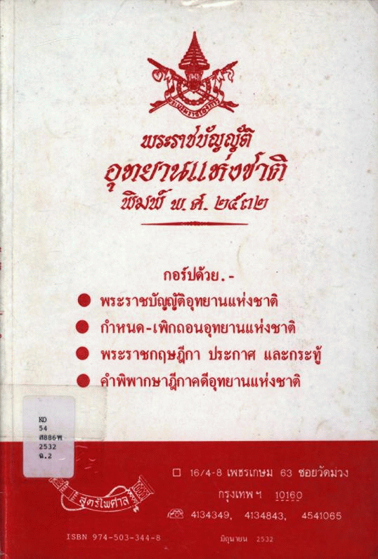 National Assembly Library of Thailand | Law Book collection | KO 54 ส886พ 2532 (เรียกดูชั้นหนังสือ(เปิดด้านล่าง)) | ฉ. 1 | พร้อมให้บริการ | 3961134294 |