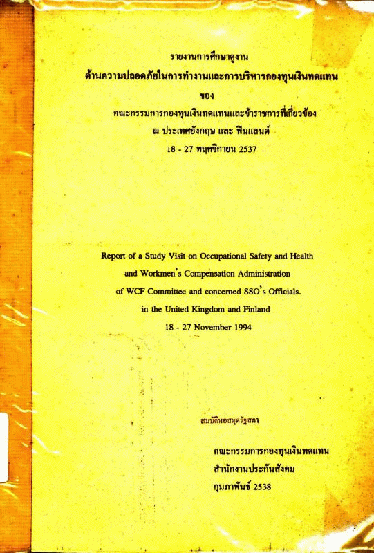 รายงานการศึกษาดูงานด้านความปลอดภัยในการทำงานและการบริหารกองทุนเงินทดแทน ของ คณะกรรมการกองทุนเงินทดแทนและข้าราชการที่เกี่ยวข้อง